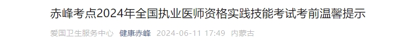 内蒙古赤峰考点2024年医师资格实践技能考试考前温馨提示