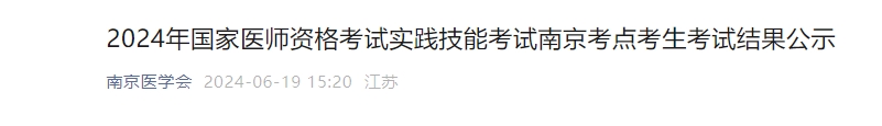 江苏南京考点2024年国家医师资格实践技能考试考生考试结果公示