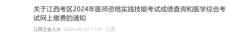 江西考区2024年医师资格技能考试成绩查询和笔试缴费通知