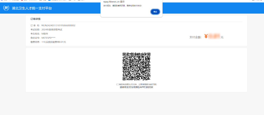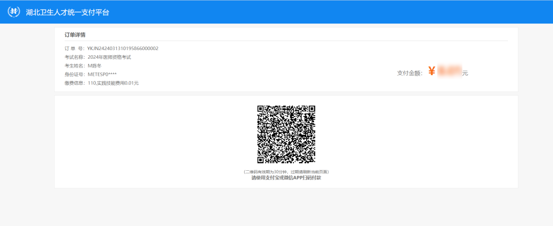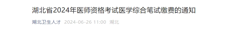 湖北省2024年医师资格考试医学综合笔试缴费的通知
