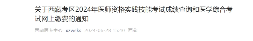 西藏考区2024年医师资格医学综合考试网上缴费的通知