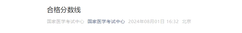 国家医学考试中心发布关于2024年医师资格考试医学综合考试合格分数线,详情如下: