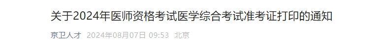 北京考区2024年医师资格医学综合考试准考证打印的通知