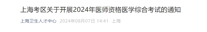 上海市医师资格考试(考区)办公室发布上海考区关于开展2024年医师资格医学综合考试的通知,通知详情如下: