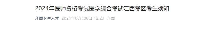 江西省卫生健康委员会发布了《2024年医师资格考试医学综合考试江西考区考生须知》,据通知可知江西考区考生准考证打印功能将于8月8日开通,通知详情如下: