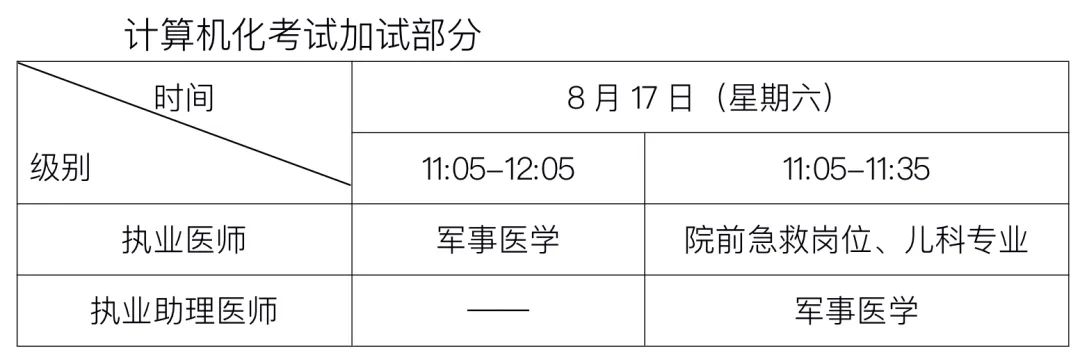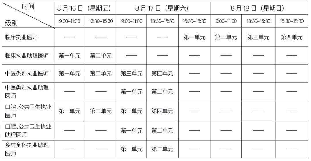 2024年医师资格考试医学综合考试江西考区所有类别(含加试)均为计算机化考试,具体时间如下: