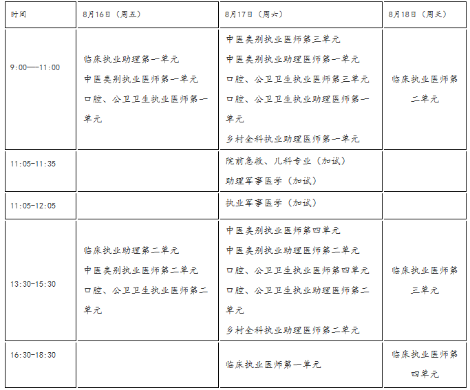 根据国家医学考试中心、国家中医药管理局中医师资格认证中心《关于2024年医师资格考试考务工作的通知》(国医考发【2024]3号)和省卫生健康委有关文件要求,2024年国家医师资格考试医学综合考试于8月16日至18日举行。