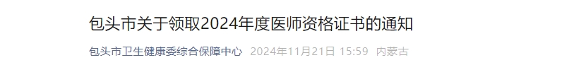 内蒙古包头市关于领取2024年度医师资格证书的通知