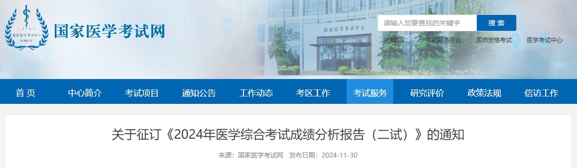 国家医学考试网发布关于征订《2024年医学综合考试成绩分析报告(二试)》的通知,通知详情如下: