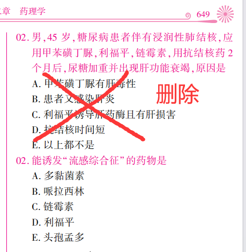 | 649页抗结核病药02题 | 题目:原文 | 删除第一个02题