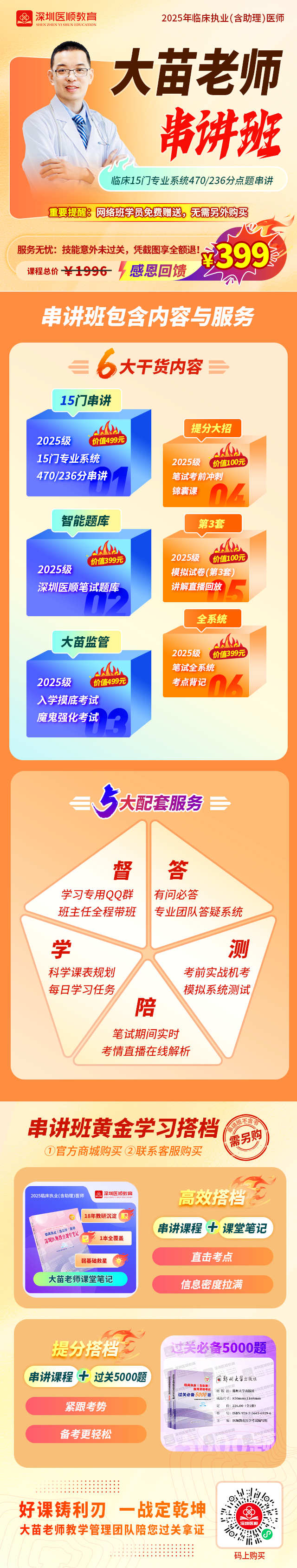 3.大苗老师领衔串讲470分/236分15个专业系统[不串讲基础人文预防科目],传授独家口诀背记。 |