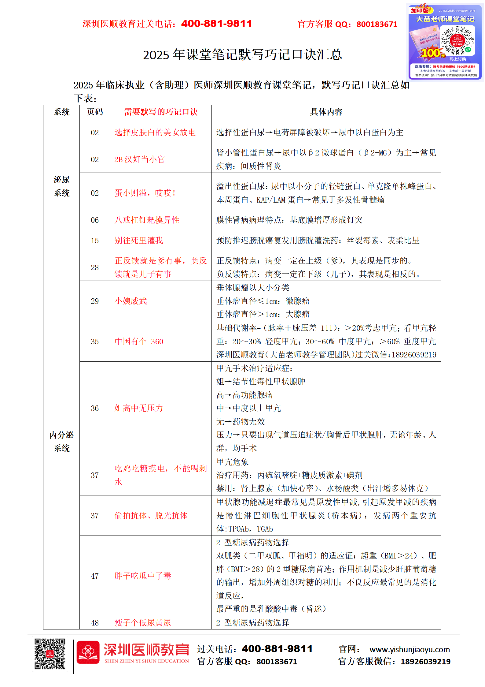 2025版深圳医顺教育课堂笔记用书勘误汇总表、默写巧记口诀完整答案