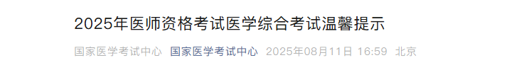 【官方提醒】2025年医师资格考试医学综合考试温馨提示