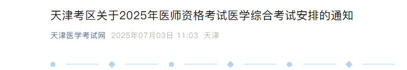 天津考区卫生健康委员会发布天津考区关于2025年医师资格考试医学综合考试安排的通知,通知详情如下: