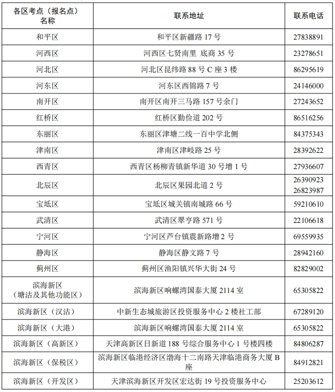 考区电话:022-58077811(接听时间:工作日上午8:30-11:30,下午1:30-5:00)。