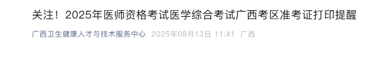 广西考区2025年医师资格医学综合考试准考证打印通知