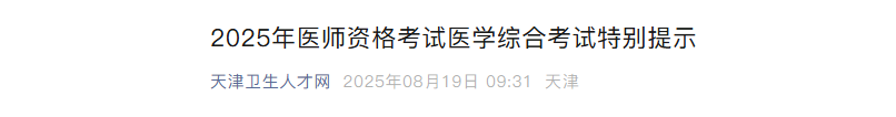 医师资格考试天津考区办公室发布关于2025年医师资格考试医学综合考试特别提示,通知详情如下: