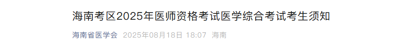 海南考区2025年医师资格医学综合考试考生须知