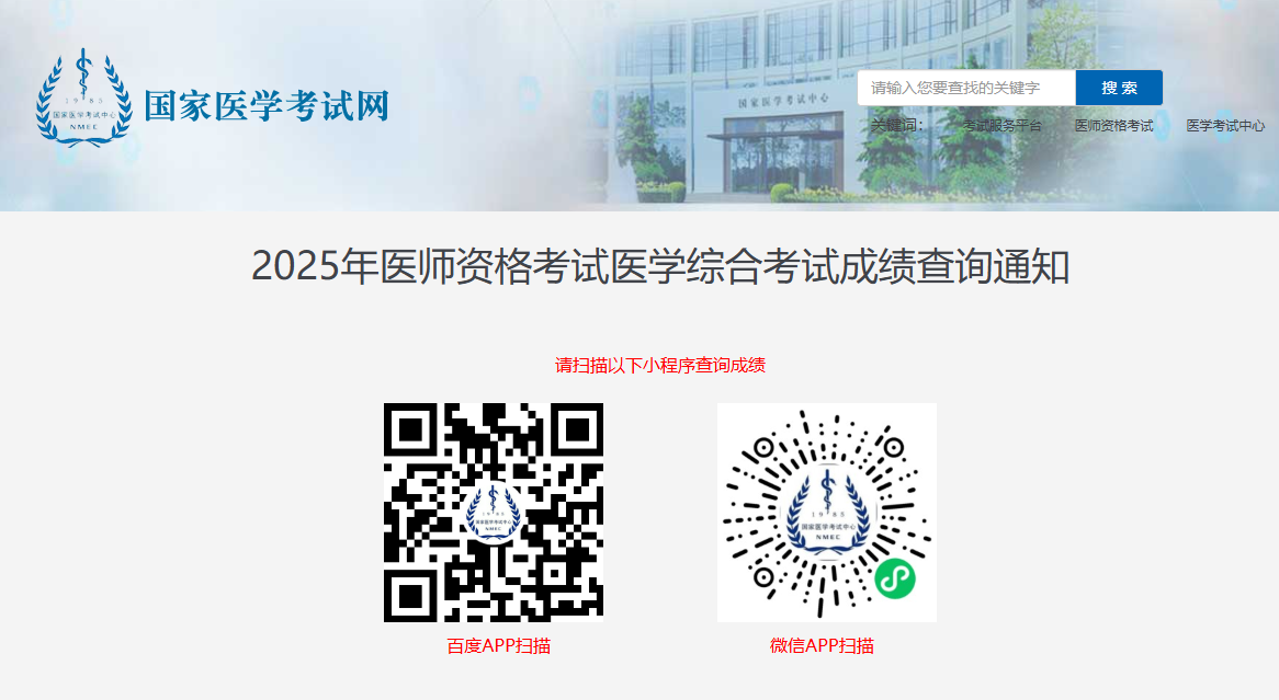 【官方发布】2025年医师资格医学综合考试成绩查询入口