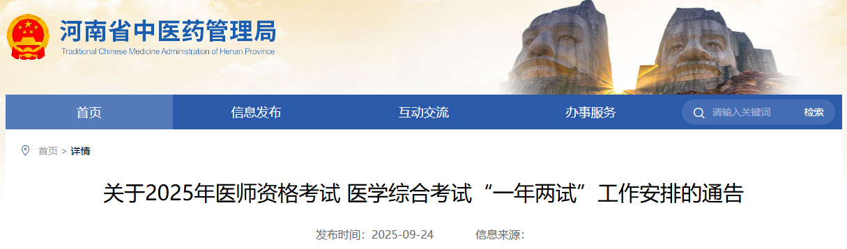 河南2025年医师资格医学综合考试“一年两试”工作安排的通告