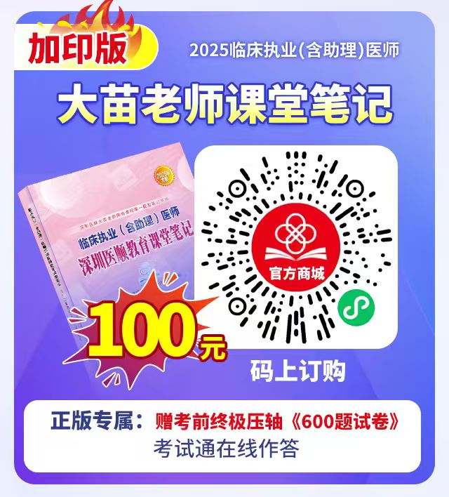 1.二考出题仍采用2025年一考大纲,我们备考复习资料为2025版深圳医顺大苗老师正版课堂笔记(同一考)