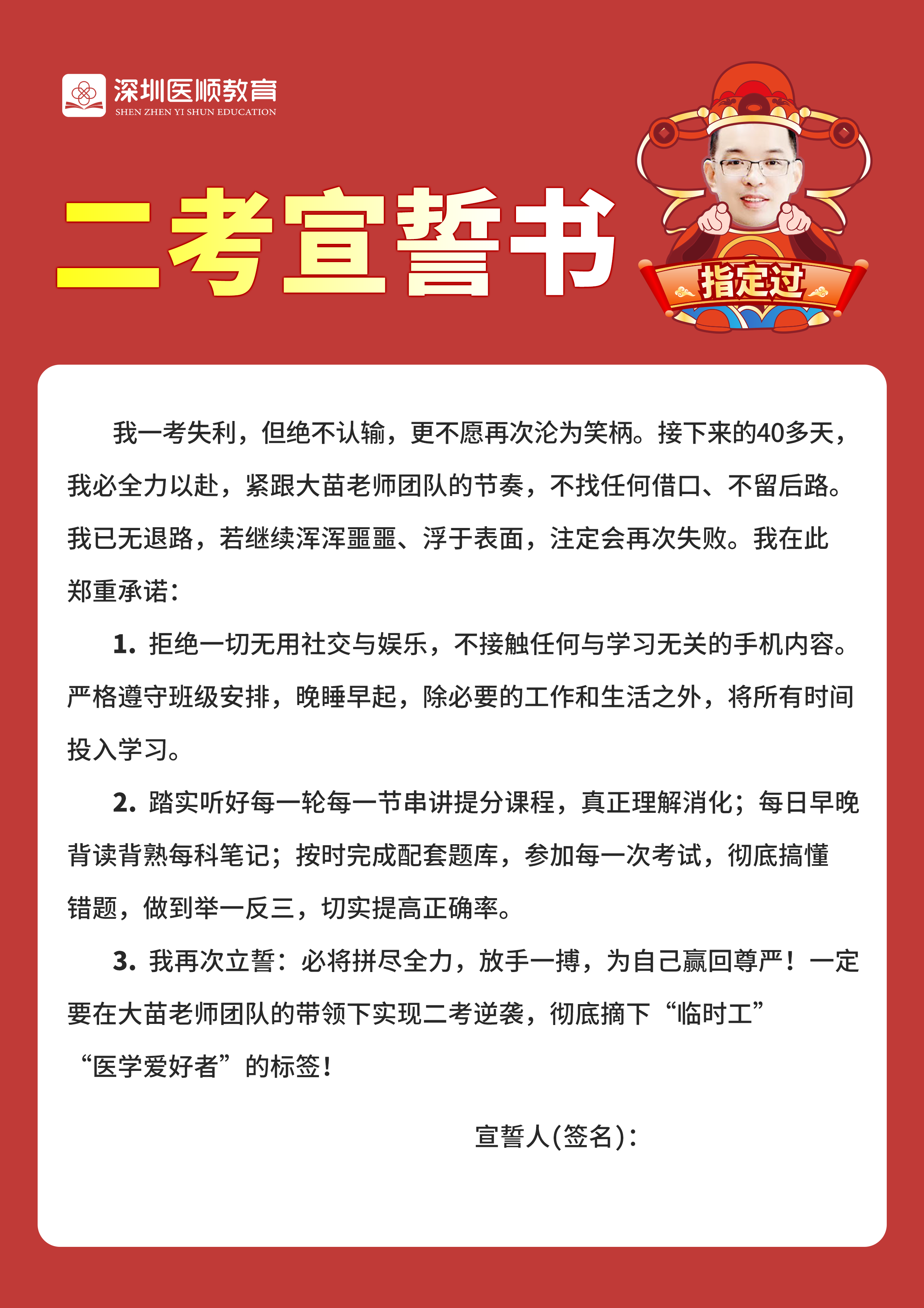 3.我再次立誓:必将拼尽全力,放手一搏,为自己赢回尊严!一定要在大苗老师团队的带领下实现二考逆袭,彻底摘下“临时工”“医学爱好者”的标签!