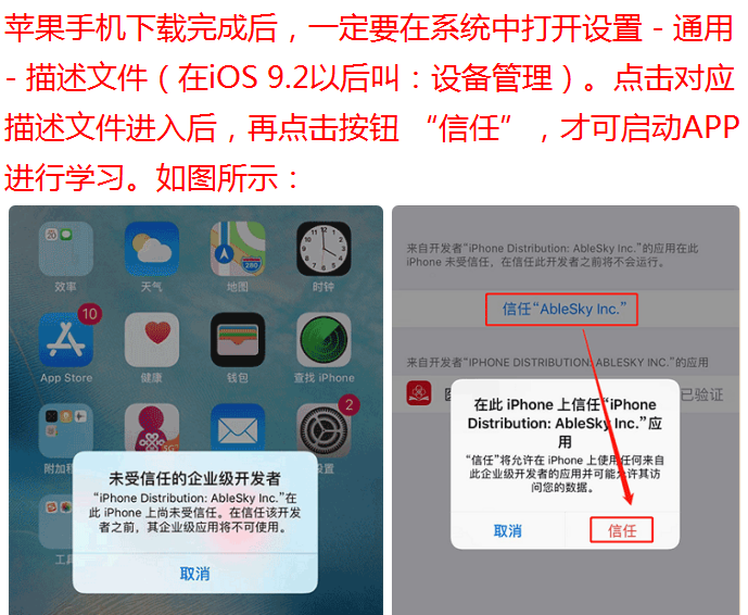 如不显示,可以重启设备下,先点击白色播放器,然后去点击设置-通用-设备管理(描述文件)